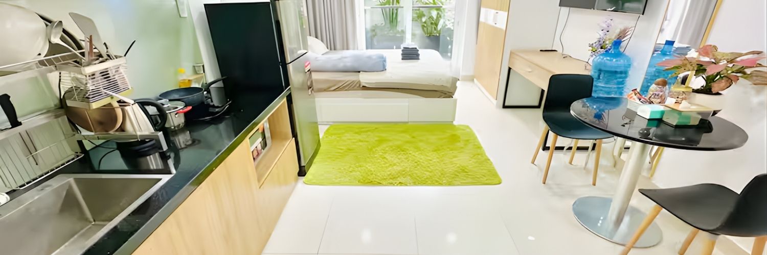 🛏️ Studio Apartment 🪑 Work Desk 🌬️ Air Conditioning 🚿 Private Bathroom 🍽️ Kitchen 👗 Wardrobe Space 🧺 Laundry Facilities 🚇 10-Minute Walk from Nha Ga Van Thanh – Cong Vien Van Subway Station 🏙️ City Location