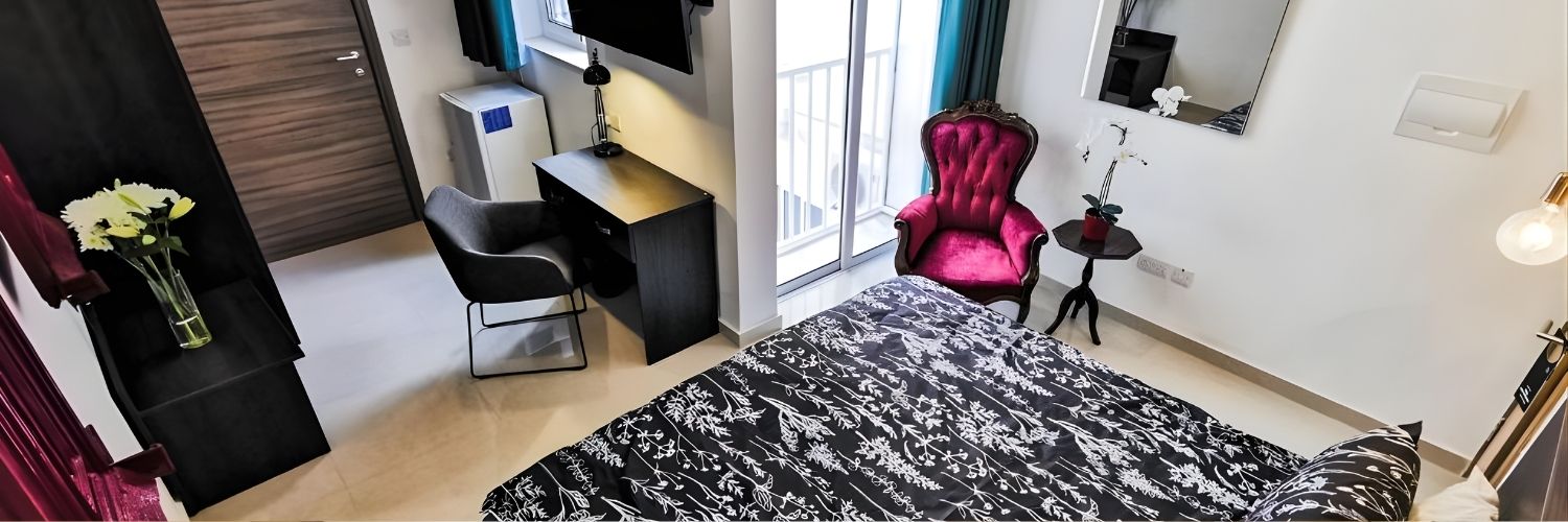 🛏️ Multiple Room Options Including King Room and King Room with Balcony 🪑 Work Desk 🛋️ Living/Communal Area 🌬️ Air Conditioning 🚿 Private Bathroom 🍴 Shared Kitchen 👗 Wardrobe Space 🛥️ 17-Minute Walk to Sliema Ferry 🏠 Town Location