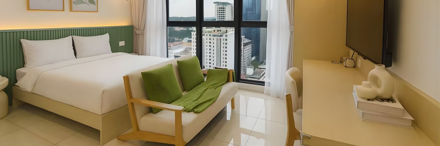 🛏️ One-Bedroom Apartment 🪑 Two Work Desks 🌬️ Air Conditioning 🚿 Private Bathroom 🍽️ Kitchen 🛋️ Living Area 👗 Wardrobe Space 🧺 Laundry Facilities 🏊‍♀️ Swimming Pool 💪 Gym 🚇 6-Minute Walk from Medan Tuanku Station 🏙️ City Location