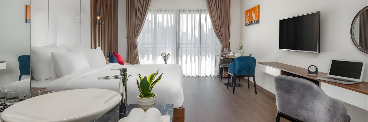 🛏️ Multiple Room Options Including Superior Studio and King Studio with City View 🪑 Desk for Working 🌬️ Air Conditioning 🚿 Private Bathroom 🍽️ Kitchenette 👗 Wardrobe Space 🧺 Laundry Facilities ✈️ 3.9 Miles from Da Nang International Airport 🏖️ Beach Location